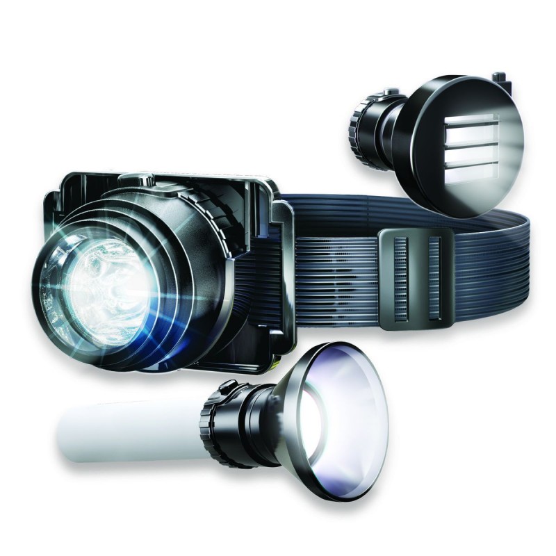 ΠΕΡΙΕΧΟΜΕΝΑ: 1 βάση λυχνίας με μπαταρίες, 1 βάση φακού κεφαλής, 1 κάλυμμα κωνικού σχήματος, απάκι κλείστρου, 1 κύλινδροσ, 1 ασημένιο αυτοκόλλητο, 1 ελαστικός ιμάντας κεφαλής με κούμπωμα. Επίσης, απαιτείται, αλλά δεν συμπεριλαμβάνεται σε αυτή τη συσκευασία: ένα μικρό σταυροκατσάβιδο.