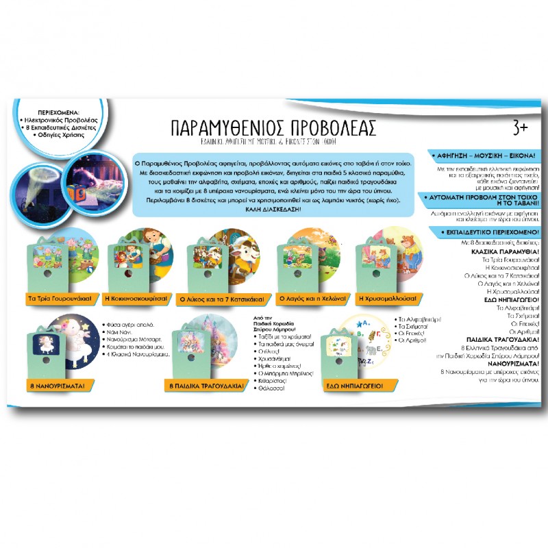 Περιλαμβάνει 8 δισκέτες και μπορεί να χρησιμοποιηθεί και ως λαμπάκι νυκτός (με ή χωρίς ήχο).