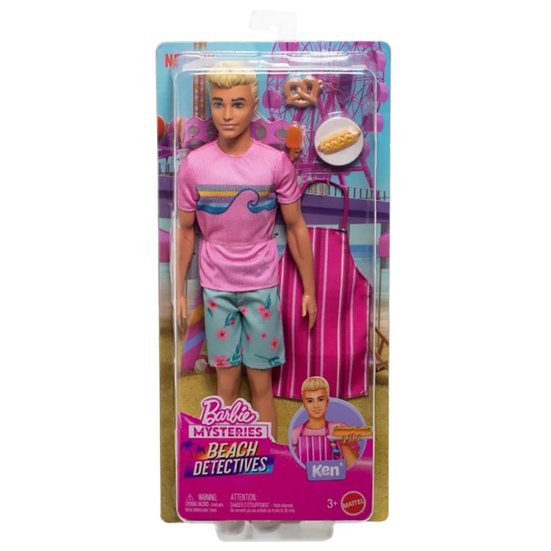 Ο Ken είναι έτοιμος να σερβίρει… περιπέτεια και λαχταριστά σνακ! Από τη σειρά Barbie Mysteries: Beach Detectives, αυτή η κούκλα Ken ζωντανεύει τον αγαπημένο χαρακτήρα με μοναδικό στυλ και μαγειρικά αξεσουάρ που ενθαρρύνουν το δημιουργικό παιχνίδι.