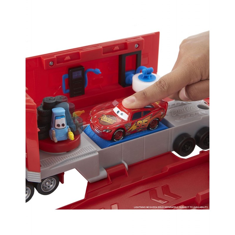 Cars Νταλίκα Μακ Που Ανοίγει Με την Νταλίκα Μακ που Ανοίγει από τα Αυτοκίνητα της Disney Pixar, τα παιδιά μπορούν να μεταφέρουν αυτοκίνητα, να τους κάνουν σέρβις και πολλά ακόμα! Η νταλίκα έχει διπλή λειτουργία ως φορτηγό μεταφοράς αυτοκινήτων και συνεργείο. Ανοίξτε την καρότσα του Μακ και θα αποκαλυφθεί ο Γκουίντο, έτοιμος να βοηθήσει τα αγαπημένα μας αυτοκίνητα (πωλούνται ξεχωριστά) να ξεκινήσουν τους αγώνες. Μόλις ανακοινωθεί ο νικητής, αποθηκεύστε τα πάντα στην νταλίκα και ξεκινήστε – απλώς σπρώξτε μέχρι τον επόμενο προορισμό. Οι θαυμαστές της ταινίας Αυτοκίνητα θα ενθουσιαστούν με τα λεπτομερή σχέδια του Μακ, εμπνευσμένα από την ταινία. Αφήστε τη φαντασία σας ελεύθερη και ξαναζήστε τις αγαπημένες σας σκηνές ή φτιάξτε καινούργιες περιπέτειες! Ξεπλύνετε τη σκόνη από τους αγώνες με το περιστρεφόμενο σφουγγάρι και βάλτε βενζίνη με τη φορητή αντλία. Σταματήστε στην πλατφόρμα και σπρώξτε τον Γκουίντο προς τα κάτω για να αλλάξετε λάστιχα! Χρησιμοποιήστε τον εκτοξευτήρα με ελατήρια για να ξεκινήσει ξανά η δράση! Αναδιπλώστε την καρότσα, φορτώστε τον αγαπημένο σας χαρακτήρα (πωλείται ξεχωριστά) και σπρώξτε για να βγείτε στον δρόμο και να ξεκινήσετε τον επόμενο αγώνα!