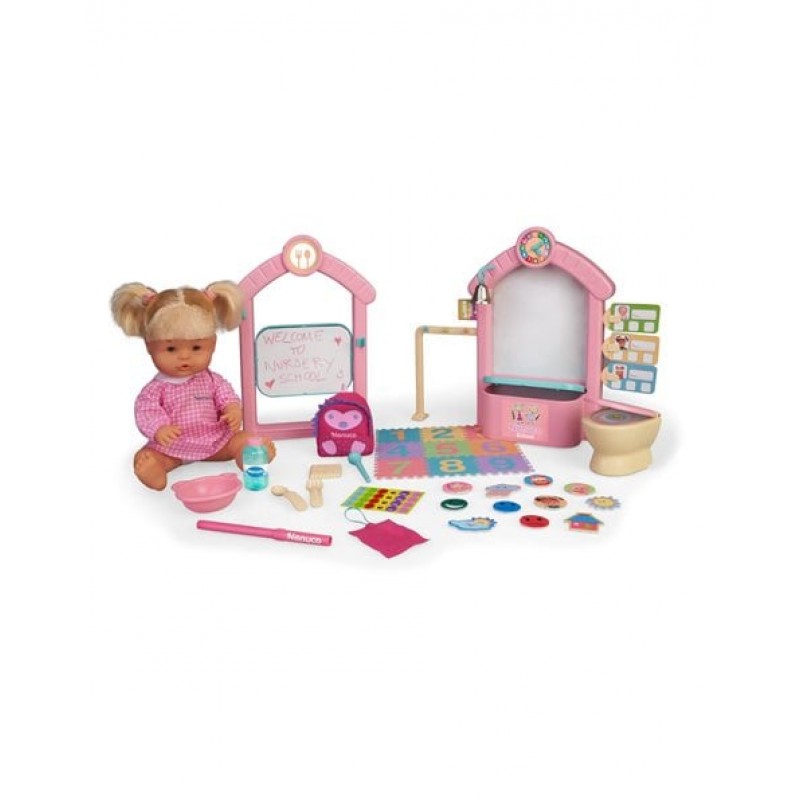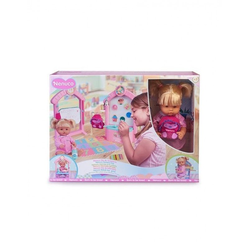 Ή Nenuco μεγάλωσε και είναι ώρα για τον παιδικό σταθμό! Σετ παιχνιδιού με κούκλα Nenuco 35 εκ με μαλλάκια και πάνω από 30 διαφορετικά αξεσουάρ, με θέμα τον Παιδικό Σταθμό. Η κούκλα φοράει ρουχαλάκια που αφαιρούνται. Διαθέτει και τη δική της σχολική τσάντα. Το σετ περιλαμβάνει 4 διαφορετικούς χώρους για παιχνίδι, πολύχρωμο χαλί για να μαθαίνουν τα παιδιά τα χρώματα και τους αριθμούς, ρολόι, κουδούνι για διάλειμμα, πίνακα για να οργανώσουν τις εργασίες της ημέρας και πολλά αξεσουάρ που απεικονίζουν ρεαλιστικά όλο το περιβάλλον ενός παιδικού σταθμού.