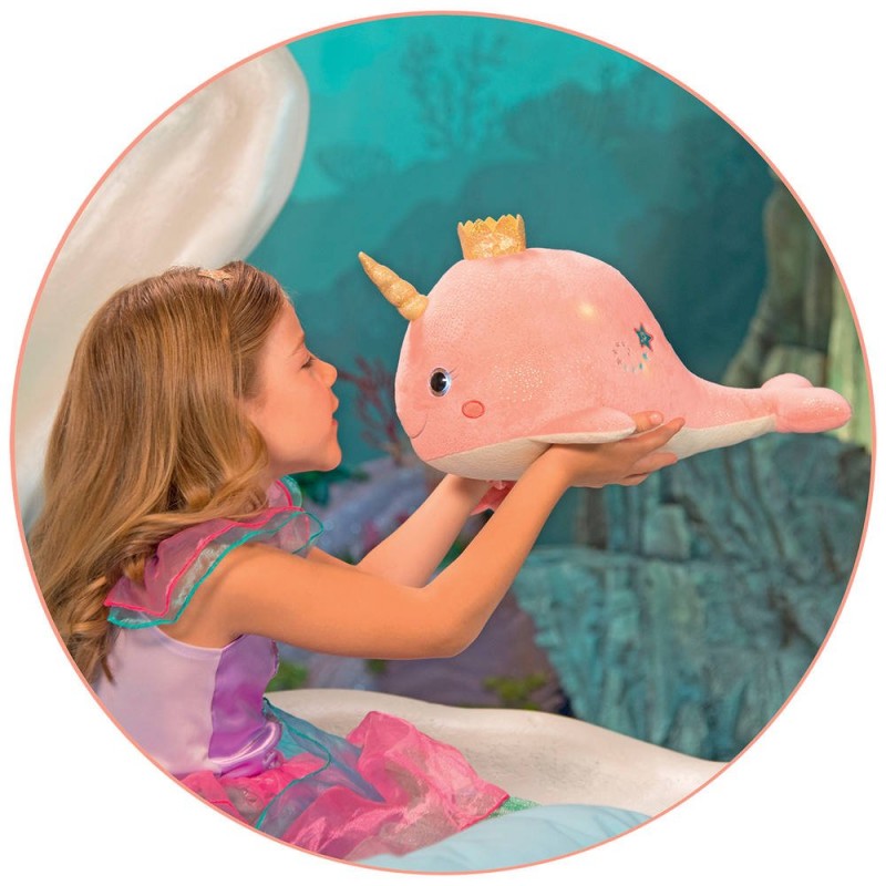 Ένας κόσμος κάτω από τη θάλασσα, όπου η Bellabloo θα γίνει ο καλύτερος φίλος των μικρών γοργόνων. Σε απαλό ροζ χρώμα, με φως και γλυκές μελωδίες. Με κίνηση και φως στην ουρά και μάτια που λάμπουν έντονα. Μαλακό λούτρινο, εξαιρετικής ποιότητας. Με λειτουργία silentmode, για χρήση ως φωτάκι νυκτός. Στη συσκευασία θα βρείτε μια βούρτσα αστερία.