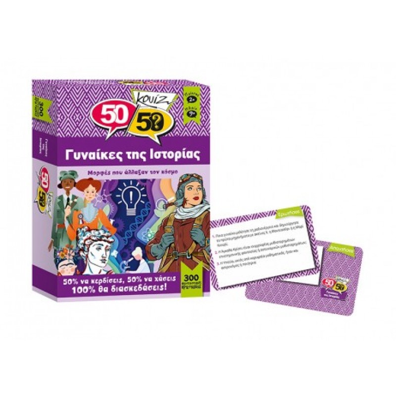 Πρόκειται για ένα κλασικό παιχνίδι κουίζ και γνώσεων σχεδιασμένο από την εταιρεία 5050Games. Μάθε τα πάντα για τις ηρωίδες και επιστήμονες μέχρι τις καλλιτέχνιδες και τις ηγέτιδες, που έχουν διαμορφώσει τον κόσμο με το θάρρος, τη γνώση και τη δράση τους. Πόσα γνωρίζεις για εκείνες τις γυναίκες που έσπασαν στερεότυπα, άνοιξαν δρόμους και άλλαξαν την πορεία της ιστορίας; Τέσταρε τις γνώσεις σου με τις 300 διαφορετικές ερωτήσεις που περιλαμβάνονται. Σκοπός του παιχνιδιού είναι απαντώντας σωστά στις ερωτήσεις, να μαζέψεις τις περισσότερες! Διαστάσεις κάρτας: 5,7 x 8,9 εκ.